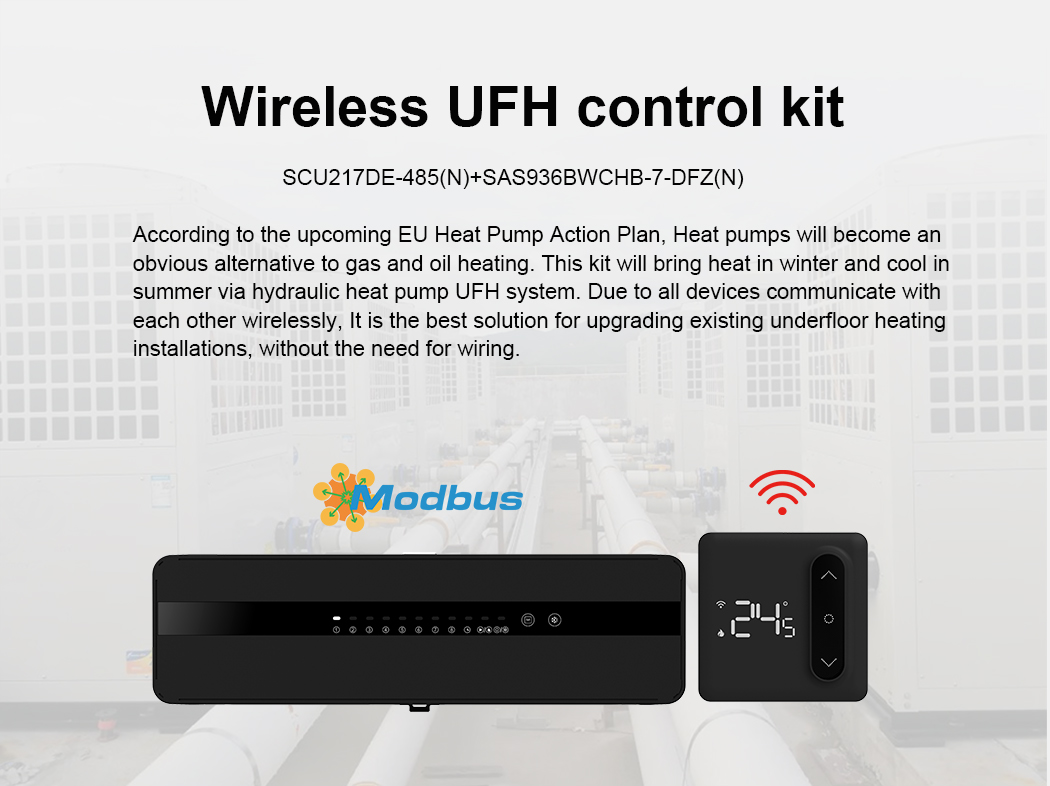 نظام تحكم لاسلكي بالتدفئة والتبريد الإشعاعي | متوافق مع الغلايات ومضخات الحرارة، وRS-485، وجهاز التحكم عن بُعد