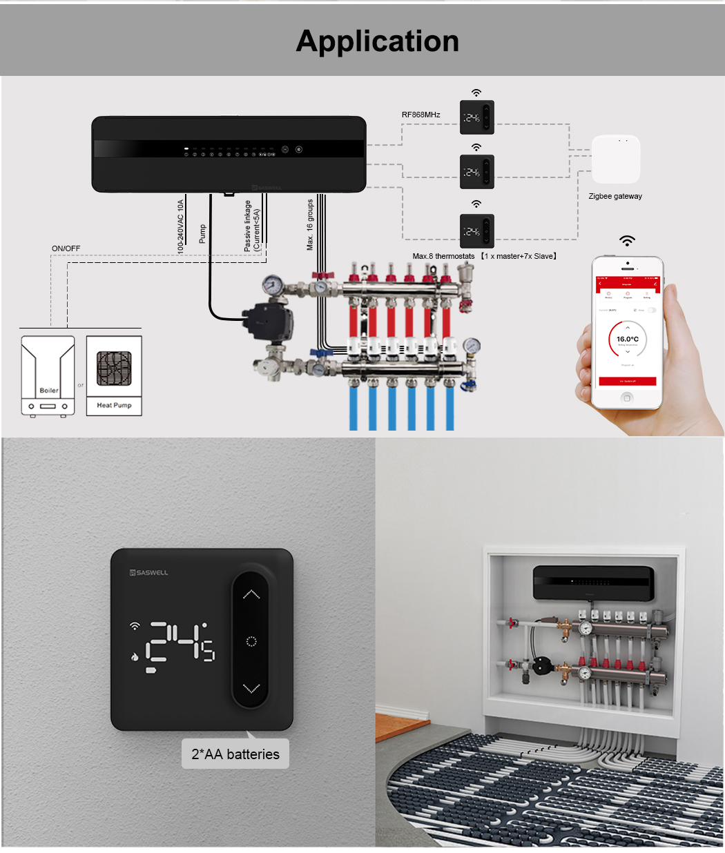 صُمم نظام التدفئة والتبريد الإشعاعي اللاسلكي SASWELL للمباني السكنية والتجارية الحديثة، ويوفر توافقًا سلسًا مع الغلايات ومضخات الحرارة. ويمكنه التحكم في التدفئة والتبريد الإشعاعي، مما يضمن بيئة داخلية مريحة على مدار العام. اتصالات RS-485 ويتكامل بسهولة مع أنظمة أتمتة المباني (BAS) ومنصات المنازل الذكية، مما يلبي احتياجات المقاولين والموزعين عبر مختلف التطبيقات.